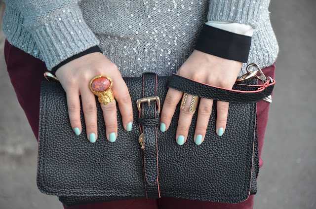 | Sequin Sweater: Seed Maroon tappered pants: Promod UK Black Suede Heels: Tony Bianco |